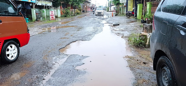 saat ini musim penghujan. "Kalau melintas situ bak kubangan kerbau, disana sini banyak lubang besar dan membahayakan pengendara ” ucap salah seorang warga.